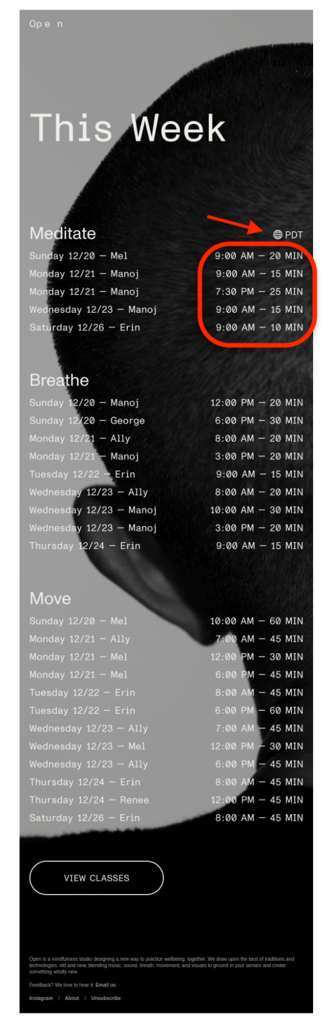 Studio mindfulness Open memiliki jadwal kelas streaming langsung yang padat untuk didaftarkan oleh klien mereka.