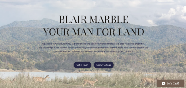 Contoh pertama kami, Blair Marble Real Estate, adalah contoh bagus dalam menggunakan gambar menarik yang secara langsung berhubungan dengan minat pelanggan: jual beli tanah untuk berburu, bertani, dan kayu.