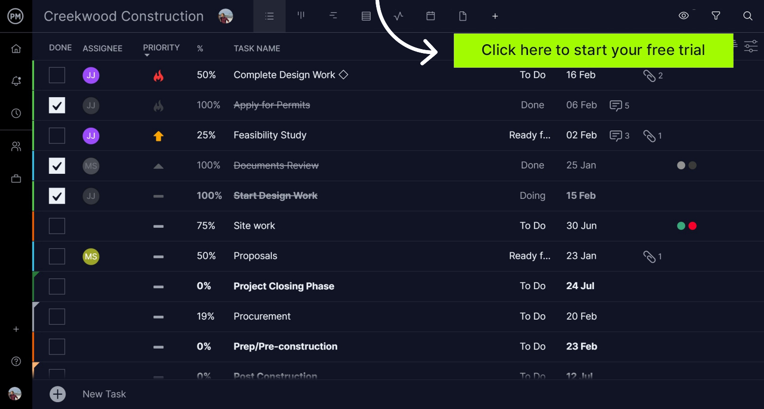Memiliki persyaratan manajemen proyek tersebut sangat penting untuk mengelola dan melaksanakan proyek. ProjectManager adalah perangkat lunak dengan penyimpanan file tak terbatas dan komunikasi real-time, bertindak sebagai hub pusat untuk semua kebutuhan proyek Anda. Gunakan tampilan daftar kami untuk meninjau semua persyaratan proyek Anda dengan cepat, tetapi salah satu dari beberapa tampilan proyek kami dapat mengakses file di mana saja dan kapan saja. Jika file diperbarui, semua orang diberi tahu melalui email dan peringatan dalam aplikasi sehingga hanya ada satu sumber kebenaran. Mulailah dengan ProjectManager hari ini secara gratis.