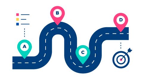 Dengan mengingat hal ini, sorot area peta jalan yang harus menjadi titik kontak bagi tim penjualan. Apa yang perlu dilakukan departemen Anda pada setiap titik dalam peta jalan untuk mencapai tujuan perusahaan yang menyeluruh ini?