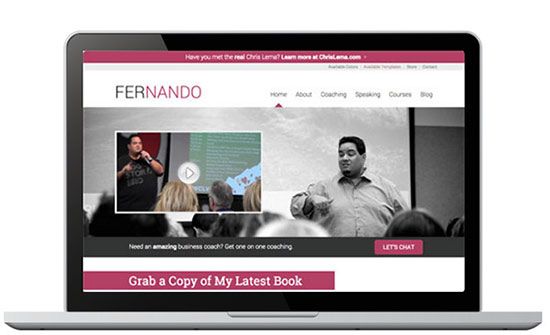Fernando adalah tema responsif oleh Web Savvy Marketing untuk penulis dan pembicara. Tema ini mencakup fitur untuk mempromosikan eBuku, ceramah, program pelatihan online, dan menjual atau membeli barang digital.