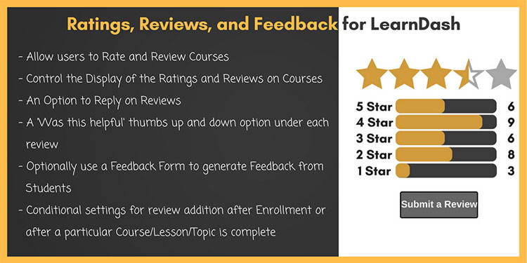 Dengan mengintegrasikan Peringkat, Ulasan, dan Ekstensi Umpan Balik untuk LearnDash, Anda dapat:
