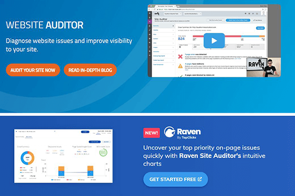 - Raven Tools – Alat pelaporan SEO terbaik dengan auditor situs web bawaan.