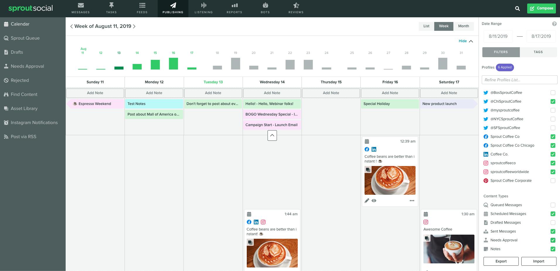 Dengan semua konten ini bersaing untuk mendapatkan perhatian Anda sebagai tim media sosial, ini adalah tempat di mana alat seperti Sprout Social dapat membantu secara besar-besaran. Dari mengelola promosi yang harus dilihat hingga memastikan Anda memiliki sesuatu yang segar untuk pengikut Anda setiap hari, kemampuan untuk menjadwalkan kalender media sosial Anda adalah kunci untuk tetap teratur.