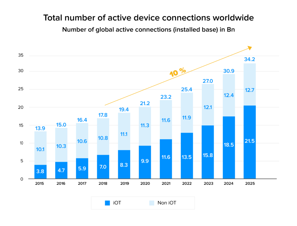 Ukuran pasar, pada gilirannya, menghasilkan peningkatan jumlah perangkat IoT yang aktif secara global.