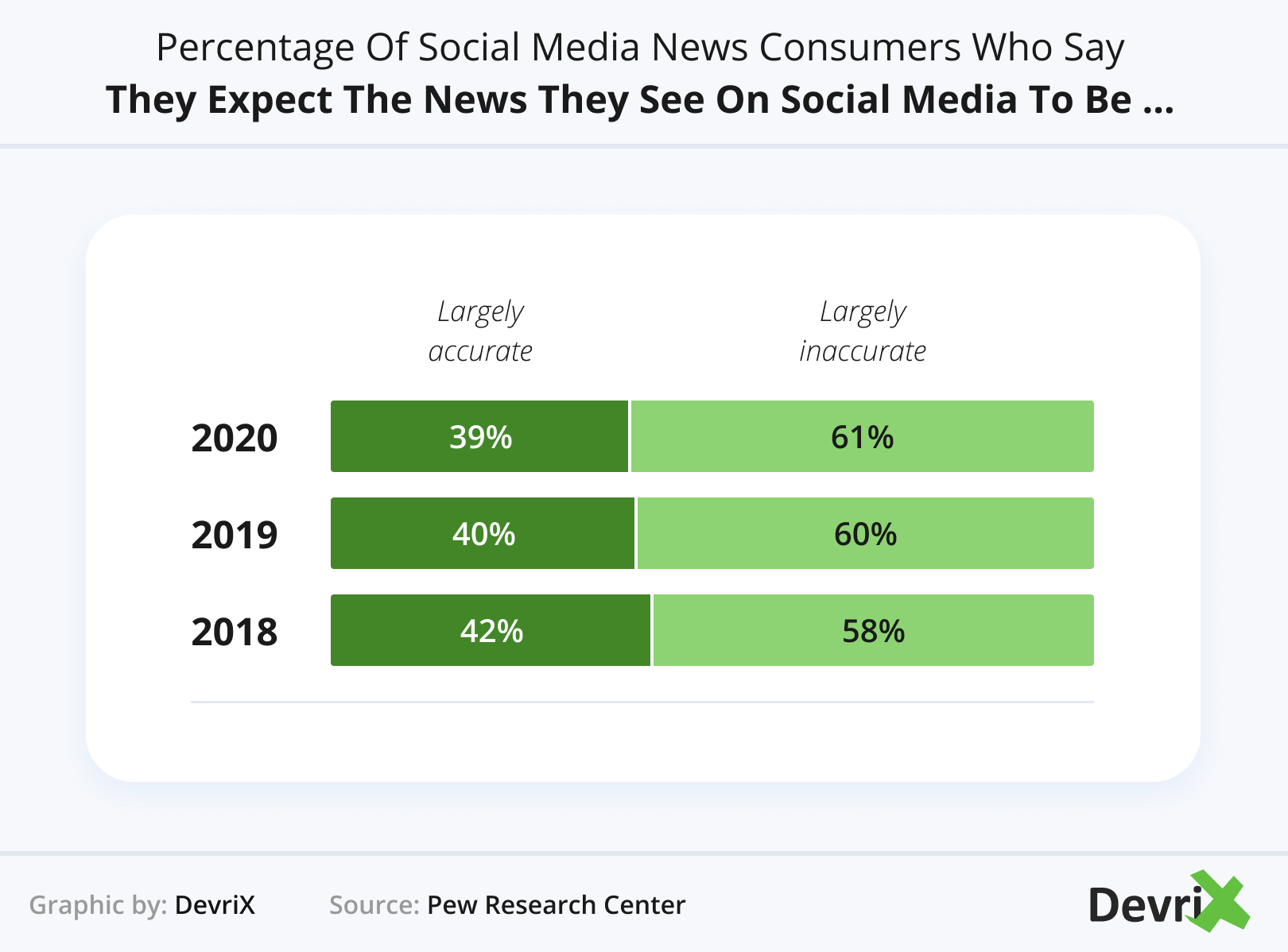 Ini menciptakan situasi sensitif yang tampaknya menempatkan media sosial dan berita di dua sisi kebenaran yang berlawanan. Meskipun masih ada orang yang memercayai semua yang mereka lihat di feed mereka, ada mayoritas yang merasa sebaliknya.