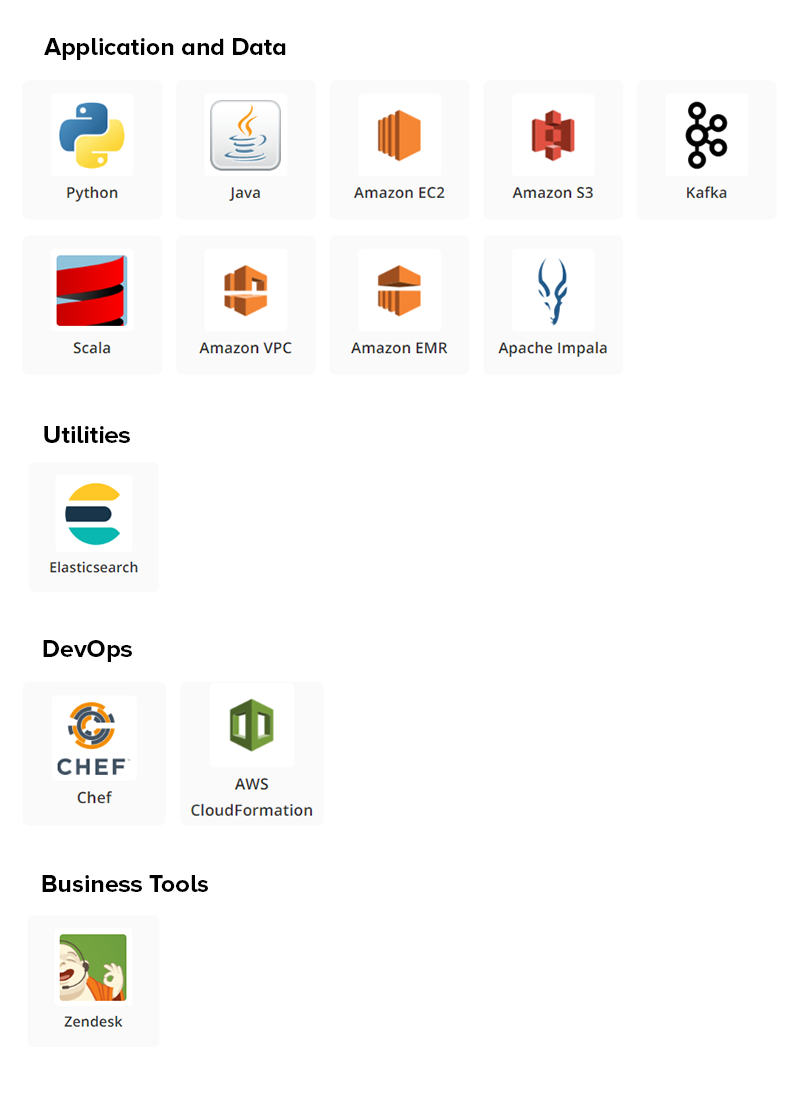 Aplikasi & Data – Untuk versi seluler, pengembang aplikasi pemesanan perjalanan dapat menggunakan bahasa dan alat seperti: Python, Java, Amazon S3, Amazon EC2, Apache Impala, Scala, Kafka, dll.