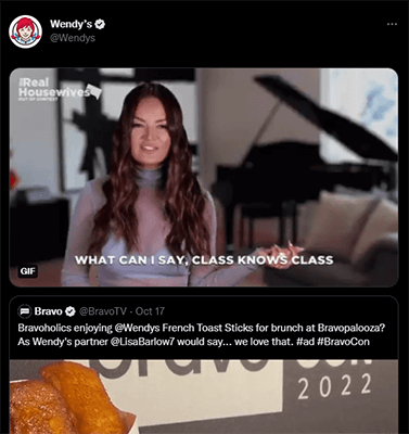 Posting Twitter jenis ini berguna jika Anda ingin memulai percakapan dengan penggemar produk Anda dan meningkatkan keterlibatan.