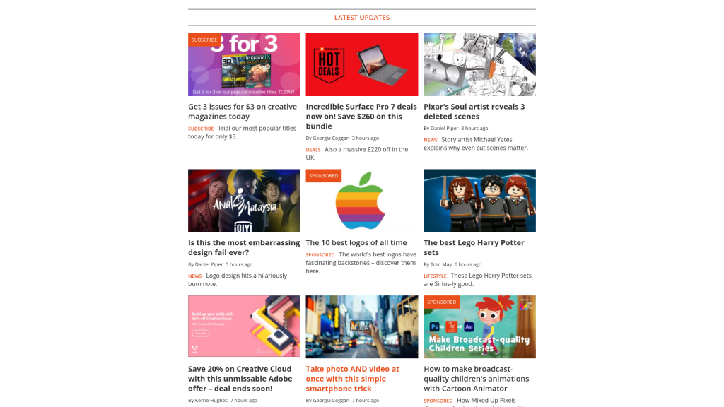 Creative Bloq adalah sumber yang bagus untuk desainer dan mencakup ulasan, tutorial, dan banyak inspirasi. Bahkan ada seluruh bagian yang didedikasikan untuk desain web:
