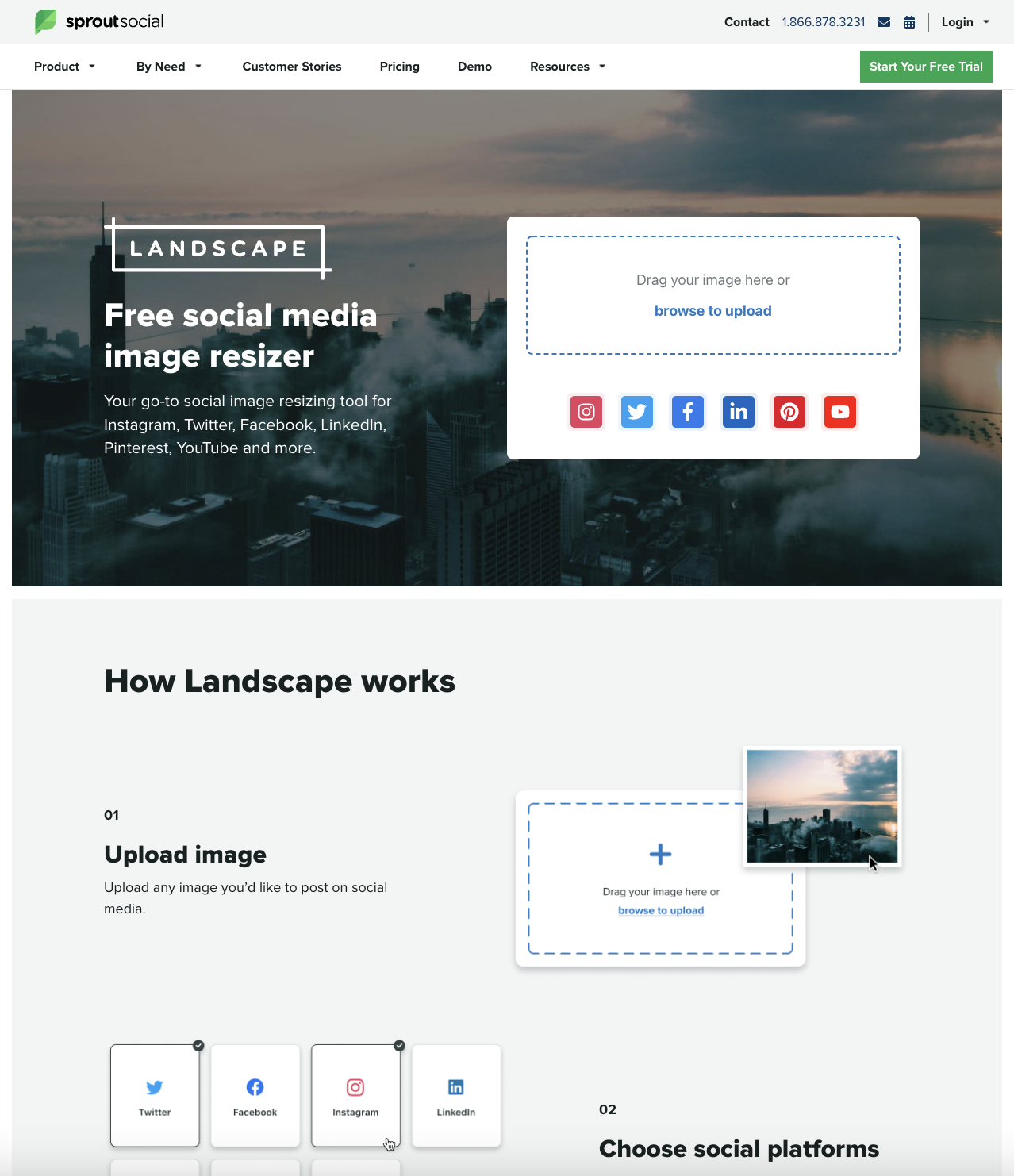 Sudah memiliki gambar untuk digunakan di YouTube tetapi perlu diubah ukurannya? Landscape by Sprout adalah alat gratis yang akan membantu Anda mengubah ukuran gambar dengan cepat untuk berbagai saluran sosial.