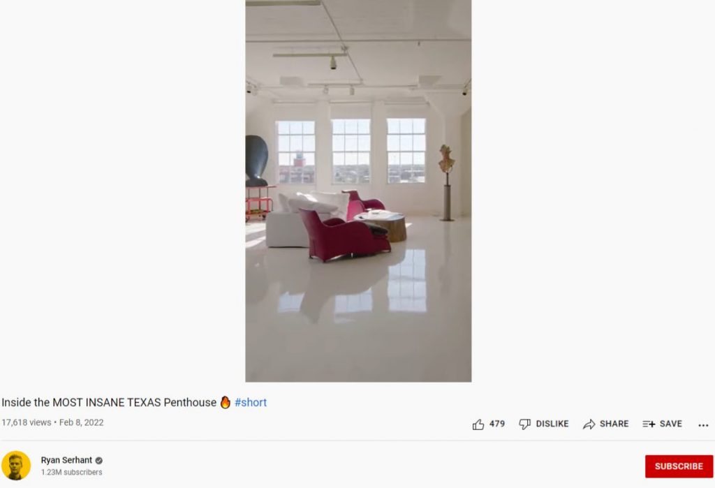 YouTube Shorts adalah cara sempurna untuk mengajak pemirsa melakukan tur mini di sekitar toko, gudang, atau kantor Anda. Dengan cara yang sama, makelar barang tak berpengaruh, Ryan Serhant menggunakan YouTube Shorts untuk memberikan tur mini ke rumah-rumah yang dia jual.