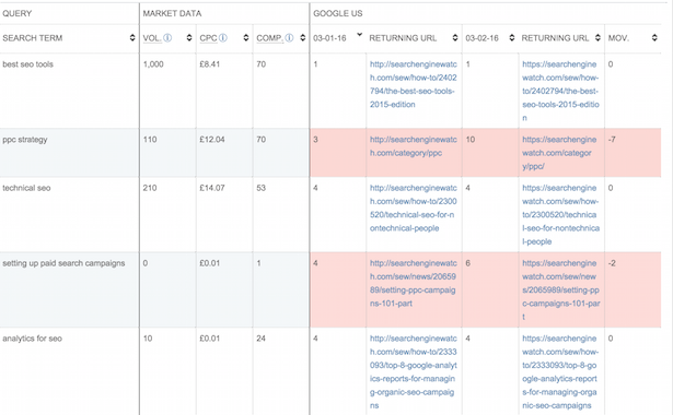 Se stai utilizzando il contenuto per migliorare le classifiche per determinati termini, misura come il contenuto sposta le classifiche e quali pagine vengono restituite per loro.