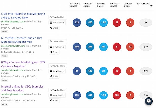 Ecco i post più condivisi su SEW degli ultimi sei mesi, mostrati su Buzzsumo.