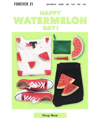 Il 2 agosto è il giorno dell'anguria. Sì, il giorno dell'anguria. Pensa a un modo per collegare il tuo prodotto a questa celebrazione amante della frutta.