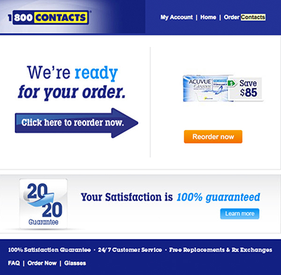 Il 15 agosto è il giorno del relax. È un ottimo giorno per inviare un'e-mail di riordino. Incoraggia i tuoi clienti a rilassarsi facendo scorta dei tuoi prodotti. Invia qualcosa di simile a questa email di riordino da 1-800-CONTACTS.