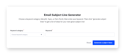 Inserisci i generatori di righe dell'oggetto, l' equivalente del software di email marketing di un chiacchierone. Questi strumenti basati sull'intelligenza artificiale eliminano le congetture dalla creazione di irresistibili righe dell'oggetto che fanno prudere le dita dei tuoi abbonati per fare clic sul pulsante "apri".