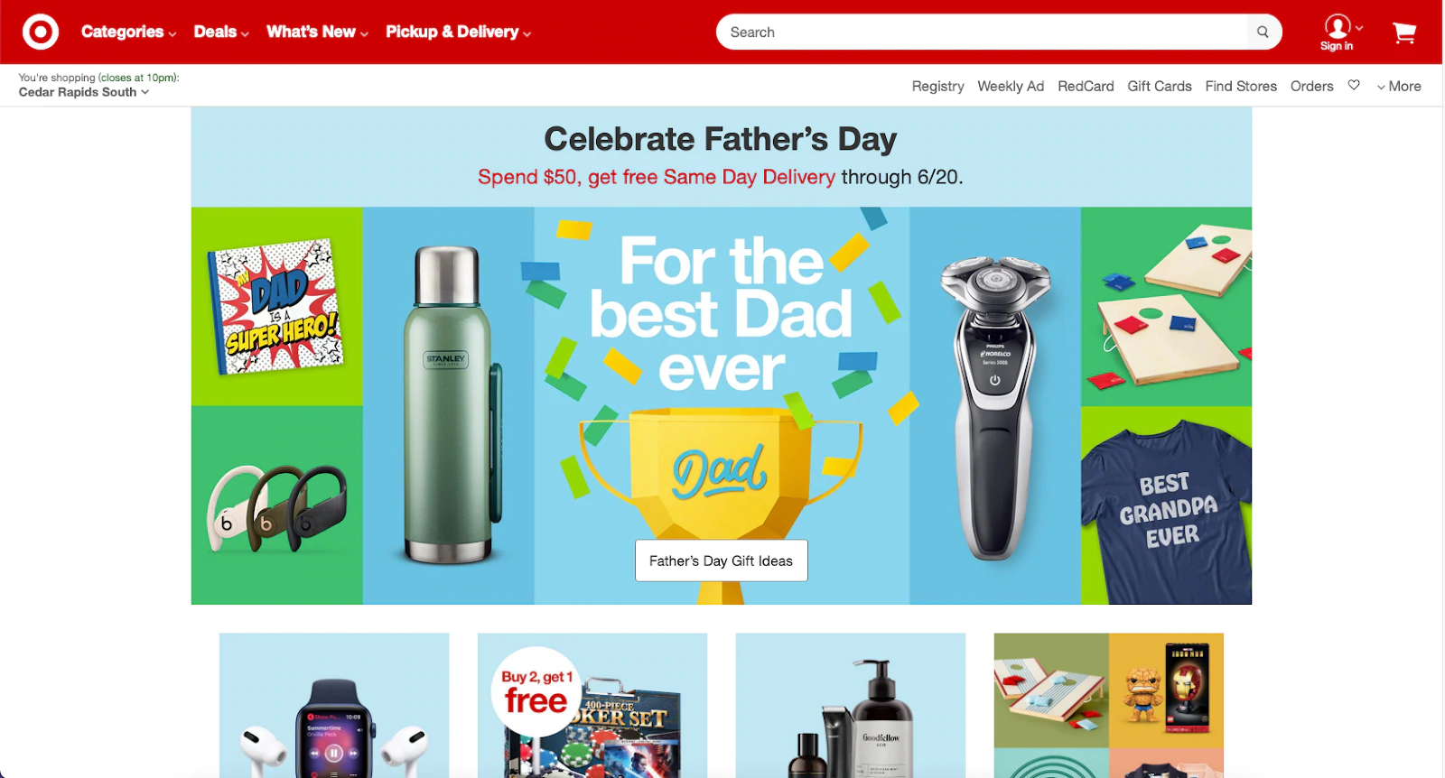 Target si è unito ai ranghi delle società di e-commerce offrendo consegna in giornata, ritiro dell'ordine e ritiro drive-up. Questi servizi erano finiti 270% nel 2020 rispetto all'anno precedente, occupando una piccola percentuale di quota di mercato rispetto ad Amazon.