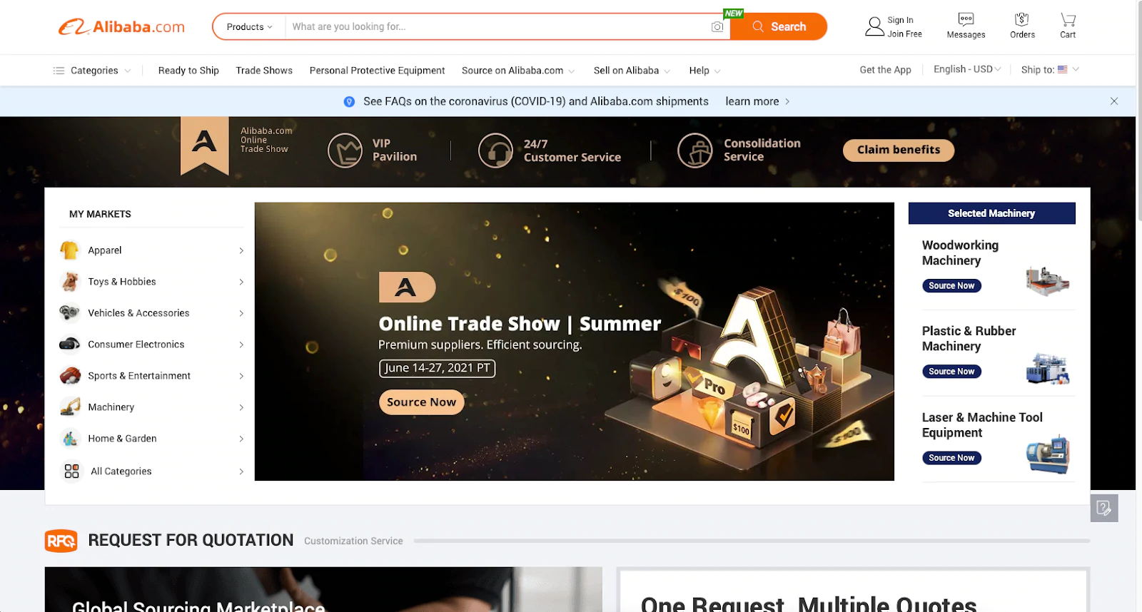 Mentre consideriamo Amazon un colosso negli Stati Uniti, in Cina c'è il Gruppo Alibaba. Fondata nel 1999 da Jack Ma (che ha visto polemica per commenti contro il sistema normativo cinese), le sue principali filiali al dettaglio sono AliExpress, Taobao e Tmall.