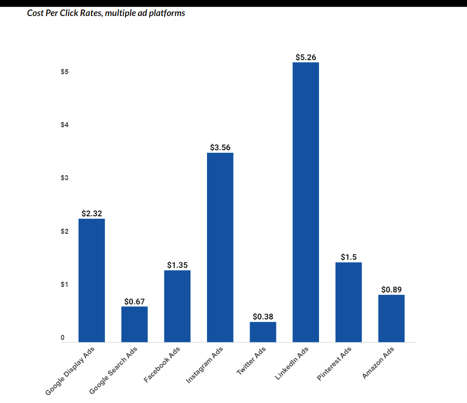 È insondabile che la terza piattaforma più popolare del pianeta abbia alcuni dei CPC medi più bassi tra gli altri posizionamenti PPC, con una media di circa $ 1,35: