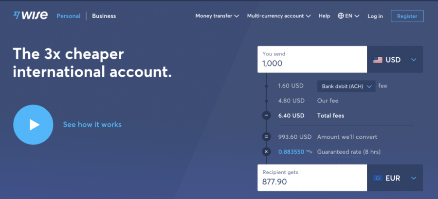 Wise, precedentemente noto come Transferwise, è una piattaforma leader di conversione di valuta. Le loro commissioni sono molto più competitive di qualcosa come Paypal. Ad esempio, un trasferimento di $ 1000 USD su Transferwise in EUR è solo una commissione di $ 6,4, rispetto a $ 44,49 su Paypal.