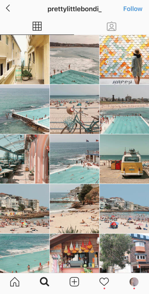 - Mantieni il tuo feed coerente enfatizzando l' acqua e il grigio-blu come tonalità primarie .