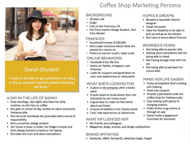 Ecco un esempio di persona B2C per una caffetteria: