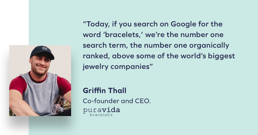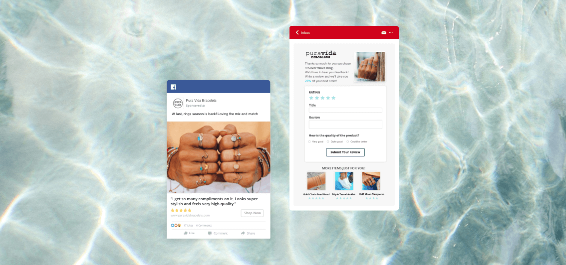 L'amato marchio di bracciali Pura Vida ha implementato le recensioni Yotpo sul proprio sito di e-commerce e lo ha utilizzato per raccogliere più di 250.000 recensioni di prodotti . Hanno quindi distribuito quelle recensioni a Google e hanno incorporato quell'UGC nei loro annunci e risultati di ricerca di Google, e sono saliti rapidamente in cima alla ricerca.
