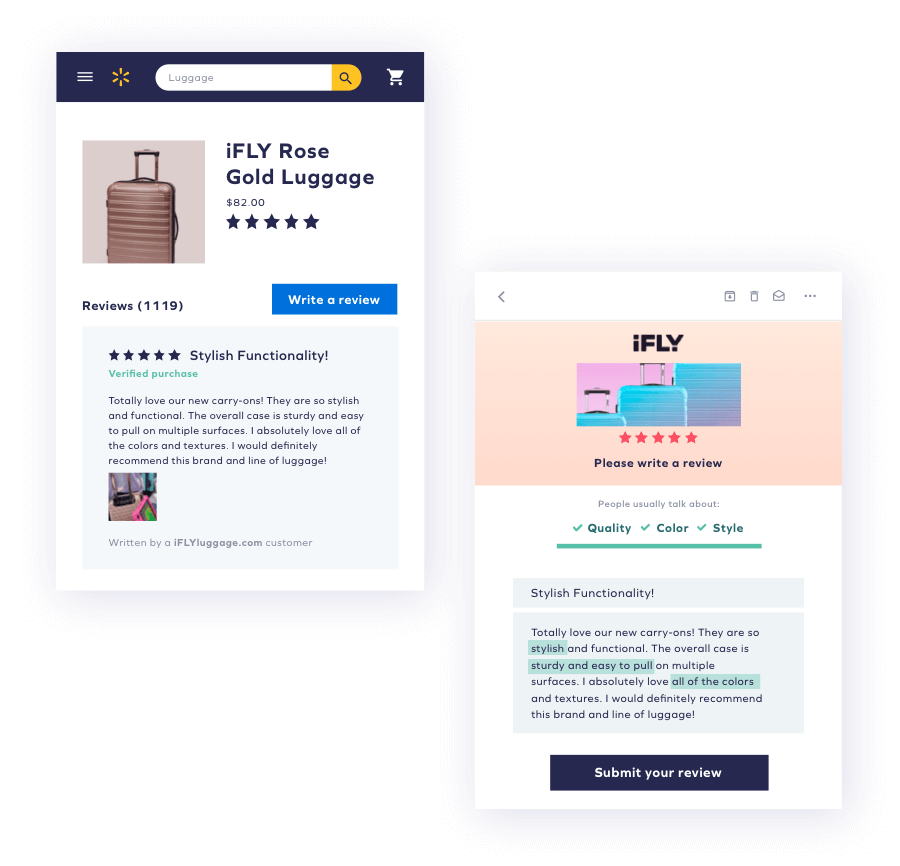 Il passaggio a Yotpo ha dato a iFLY la flessibilità e la libertà di personalizzare le proprie richieste di revisione, risultando in una migliore interfaccia utente ed esperienza e, infine, portando ad un aumento delle richieste di revisione. In effetti, sono stati in grado di raccogliere e distribuire 1.000 nuove recensioni su Walmart in soli 40 giorni .