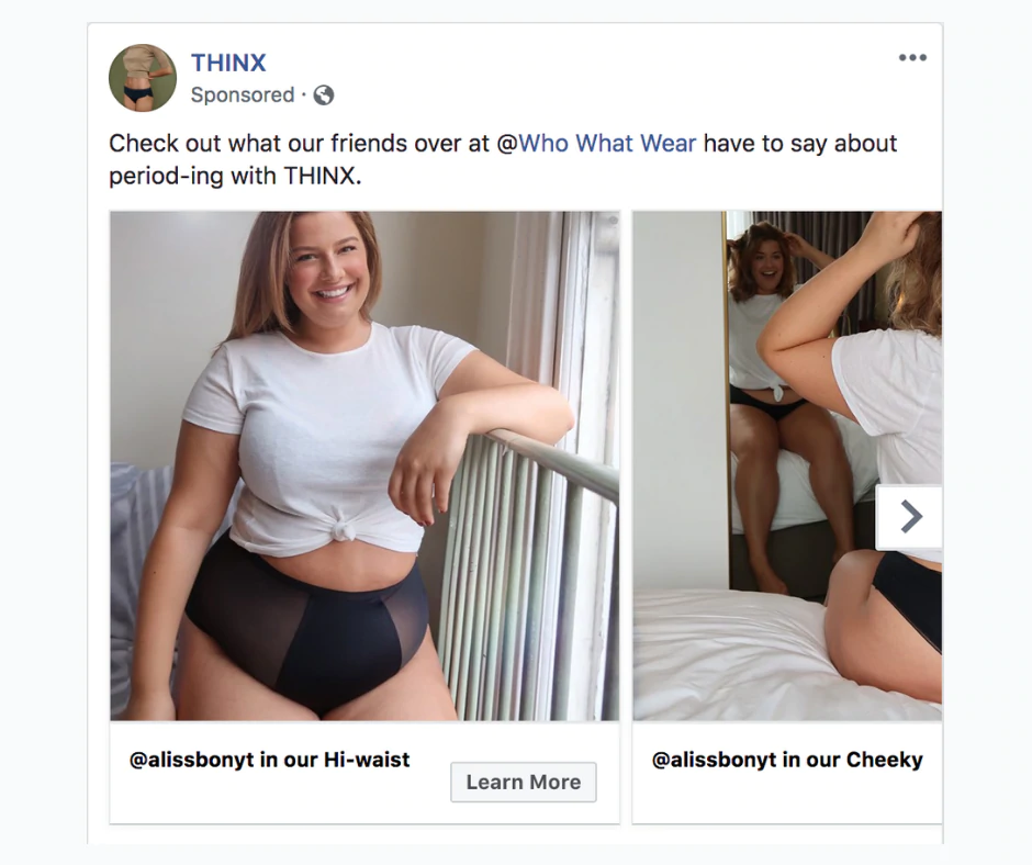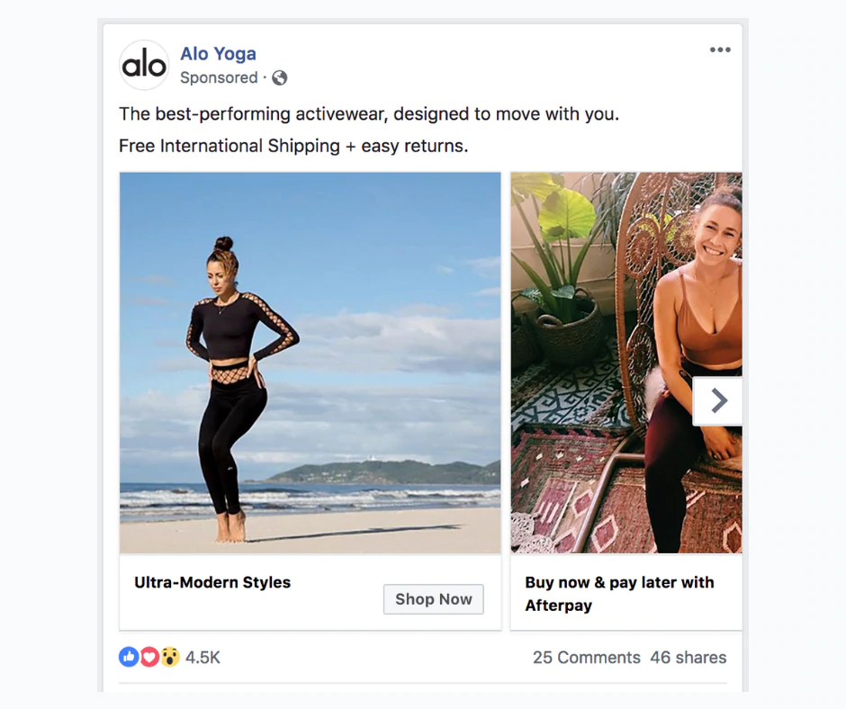 La prova sociale è essenziale per un marketing efficace e diventa ancora più fondamentale quando si conquistano i clienti attraverso gli annunci social. Se il tuo marchio ha contenuti generati dagli utenti come foto di influencer o recensioni di video, metterli in un carosello può aggiungere un livello di autenticità al tuo messaggio.
