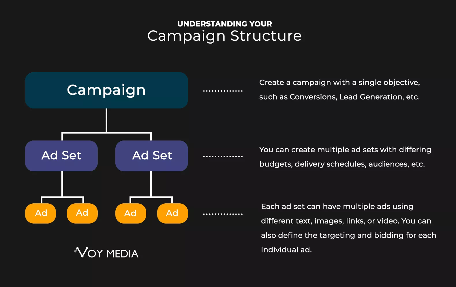 In VoyMedia, gestiamo una varietà di account diversi. Se sei un'agenzia pubblicitaria o gestisci vari account pubblicitari per diverse pagine aziendali, potresti voler utilizzare formati di denominazione come questi: