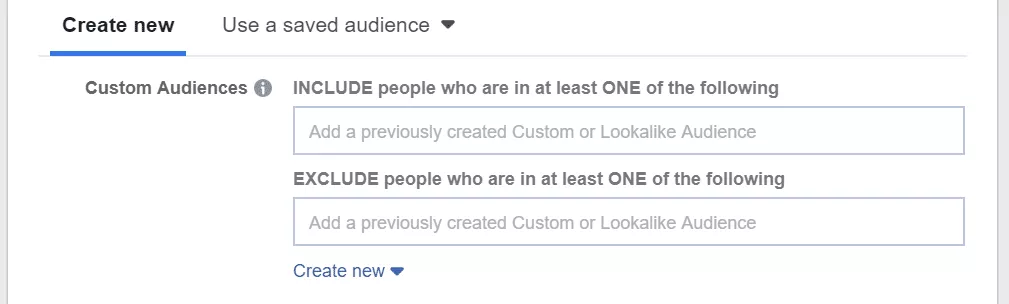 Puoi anche includere ed escludere specifici tipi di pubblico. Fai clic su "Escludi", quindi scegli i segmenti di pubblico predefiniti o crea nuovi segmenti di pubblico da INCLUDERE o ESCLUDERE dal tuo annuncio.