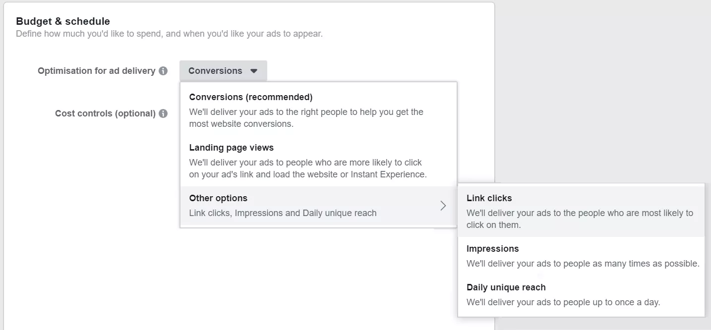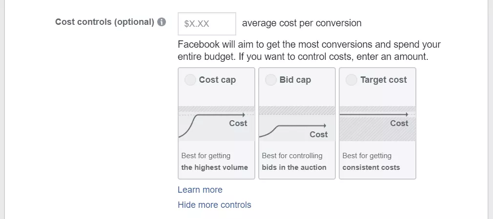 - Bid Cap – Facebook non supererà questo importo per le tue inserzioni.