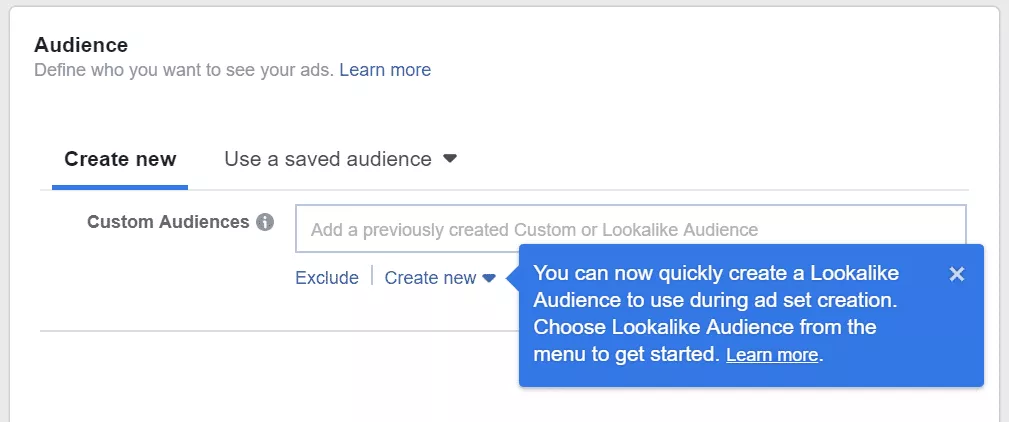 Non sei sicuro di cosa sia un pubblico simile? Puoi leggere i vantaggi della creazione e dell'utilizzo di segmenti di pubblico simili a Facebook.
