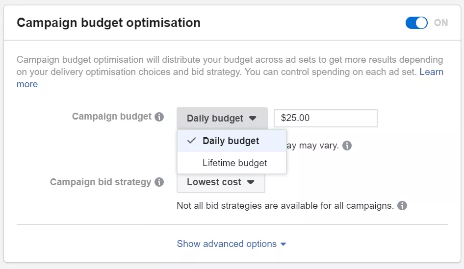 Quando si tratta di impostare un budget, Facebook ti offre due opzioni:
