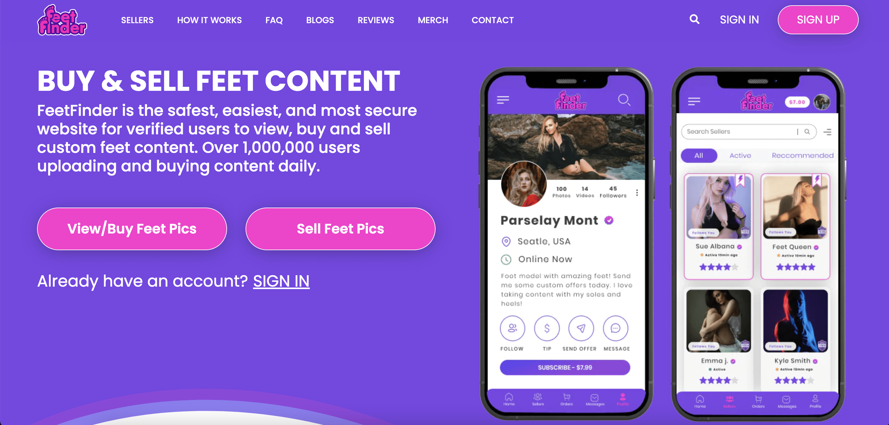 FeetFinder è un mercato per l'acquisto e la vendita di fotografie uniche di piedi. È la creazione di FLRT Inc., fondata nel 2019. Negli ultimi anni ha iniziato ad accettare video oltre a fotografie di piedi. Se sei un acquirente che cerca di soddisfare la tua ossessione per i piedi, questo sito Web è una vera e propria miniera di fantastiche immagini di piedi. E se sei un venditore, potresti guadagnare una discreta quantità di denaro semplicemente vendendo fotografie dei tuoi piedi.