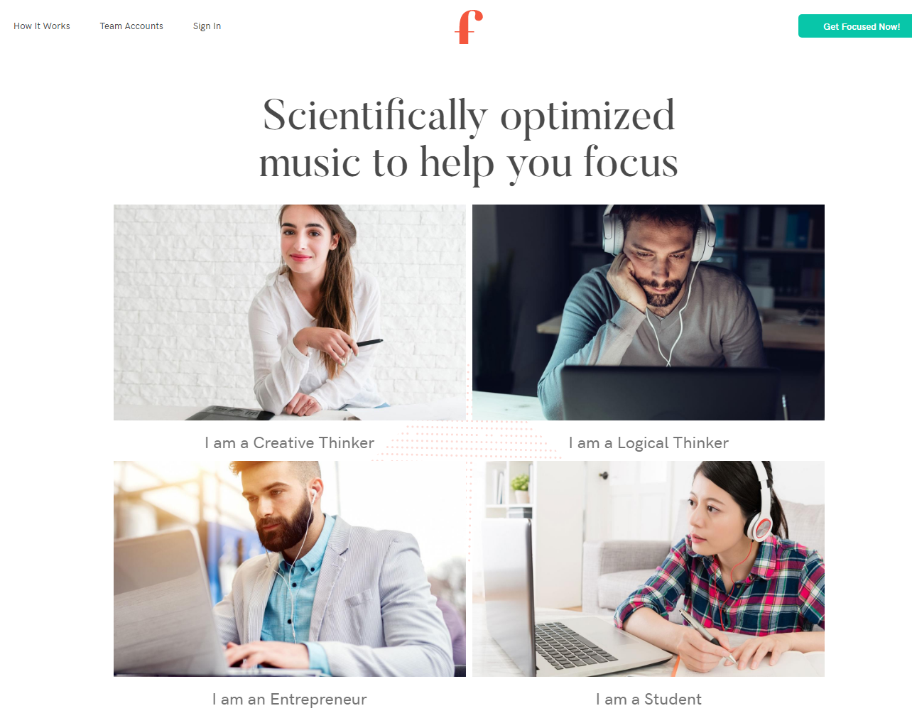 La ricerca mostra che a 2 persone su 3 piace sintonizzarsi sulla musica mentre lavorano o studiano, tuttavia, è difficile scoprire e gestire suoni che funzionino bene in modo affidabile. Così hanno creato un altro servizio musicale basato sulle neuroscienze che aiuta ad aumentare la tua concentrazione riducendo le deviazioni, dandoti energia e aiutandoti a rispettare quelle scadenze critiche.