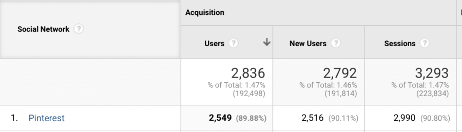 Pinterest è la mia piattaforma di social media preferita per il traffico passivo e occupa il secondo posto in questo elenco. Simile a una classifica di un post di blog su Google, una volta che un pin si classifica, raccogli i frutti per tutta la vita. Un mio blog non pubblica nuovi pin da un anno, e questa è la quantità di traffico che Pinterest mi ha inviato dal 1 gennaio al 1 ottobre. Non male!