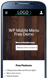 La demo GIF di WP Mobile Menu è molto semplice. Convince gli utenti a scaricare il plugin mostrando perfettamente come funziona. L'animazione mostra due esempi di menu mobili con stili di design diversi e descrive l'interazione dell'utente con quelli. Puoi avere un'idea abbastanza solida di cosa aspettarti da questo plugin, senza nemmeno controllare gli screenshot. Questa GIF ti dà l'impulso di ottenere la stessa funzionalità user-friendly sul tuo sito WordPress.