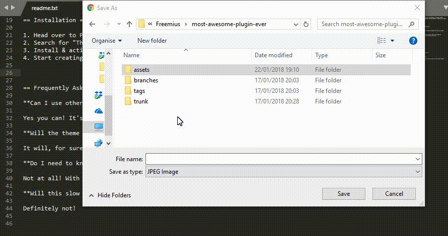Le immagini possono rendere più facili da capire le spiegazioni su come utilizzare il plug-in. Tuttavia, gli screenshot delle funzionalità del plug-in sono immobili. Poiché è necessaria almeno 1 immagine per ogni passaggio di configurazione, è necessario eseguire diverse acquisizioni. Una GIF mostra agli utenti esattamente come utilizzare le tue funzionalità, senza la necessità di testo o immagini aggiuntivi.
