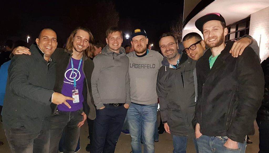 Da sinistra a destra: Kobi Sela, CEO di Web Media Group, Nick, CEO di Elegant Themes (Divi Builder), Michael Makijenko, CEO di Visual Composer, Raitis Sevelis, PM di Visual Composer, Luca Fracassi, CEO di Addendio, Yoni Luksenberg , CEO di Pojo (Elementor), Vova Feldman, CEO di Freemius
