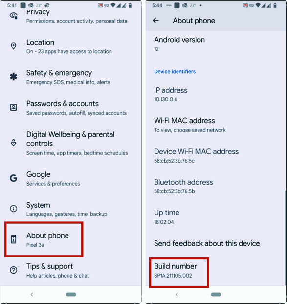 Il seguente processo è per Google Pixel 3a con Android 12. Si prevede che la procedura dovrebbe essere simile per altri telefoni con Android 12. Tuttavia, dipende dal produttore del telefono.