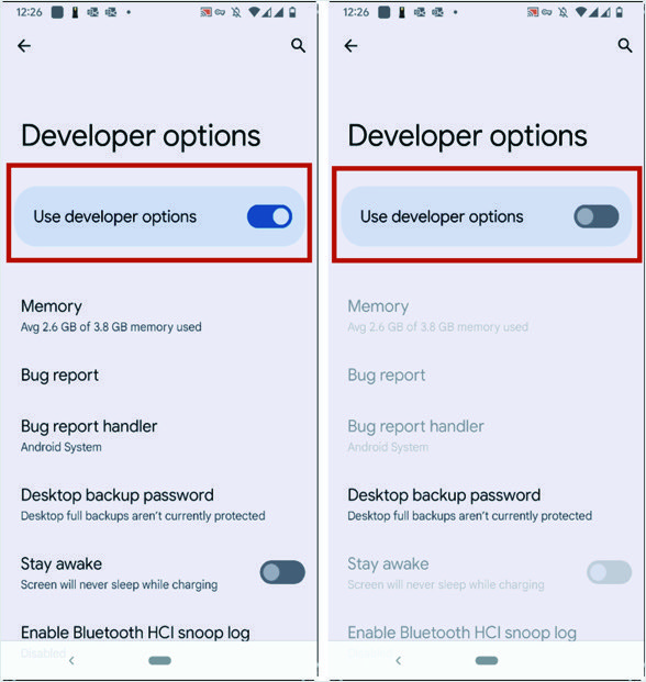 - Le "Opzioni sviluppatore" scompariranno dal menu indicando che ora è disabilitato.