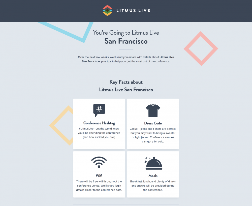 Per la cronaca, ecco l'e-mail di benvenuto del partecipante di Litmus Live.
