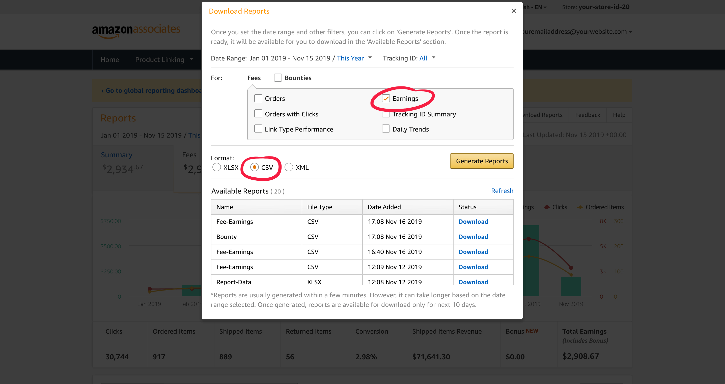 Passaggio 1. Scarica i tuoi rapporti sui guadagni da Amazon come CSV