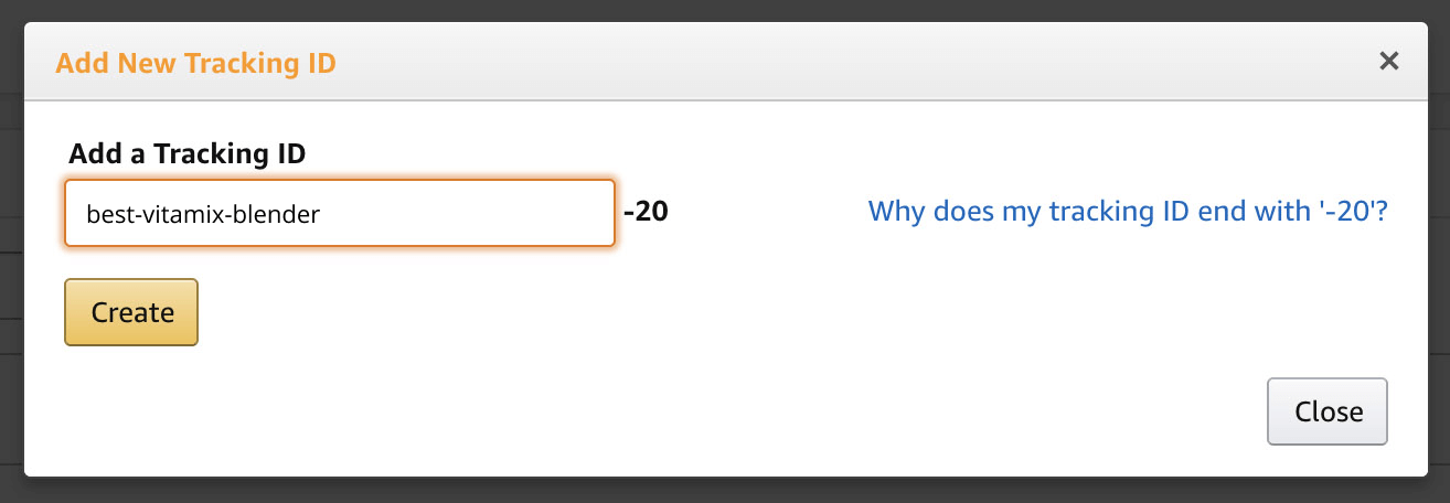 Nota: i tuoi ID devono essere univoci a livello globale, tra tutti gli Associati Amazon. Quindi, se ricevi un messaggio che dice che l'ID è stato preso, aggiungi solo alcuni numeri alla fine, ma mantieni il nome del post del blog. Se gestisci più siti su Amazon, considera un prefisso prima dello slug. Ad esempio, se il tuo sito web si chiama "bestblenderreviews.com", prendi in considerazione la creazione di tag denominati "bbr-best-vitamix-blender-20".
