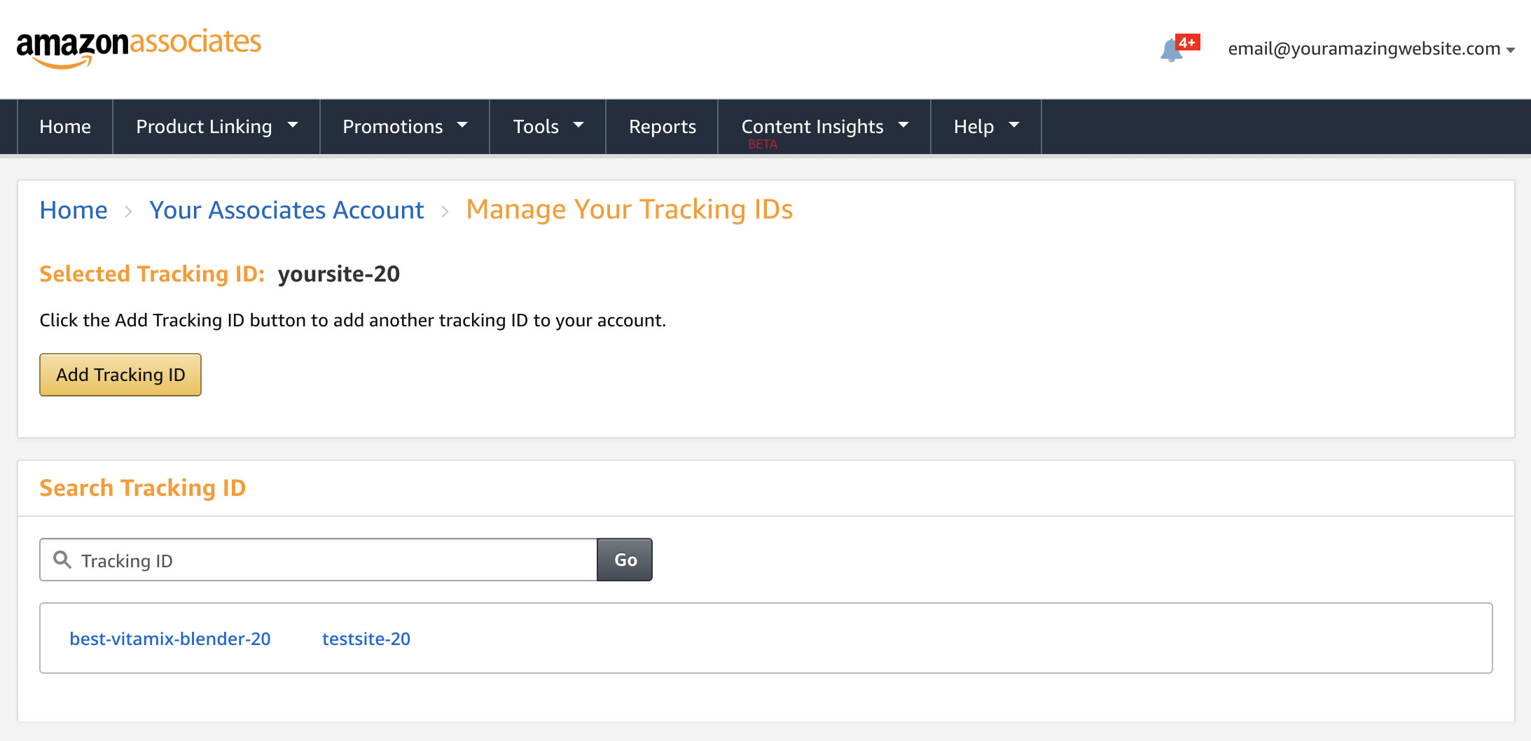 Il portale Amazon Associates ci offre la possibilità di creare fino a 100 ID di tracciamento univoci .