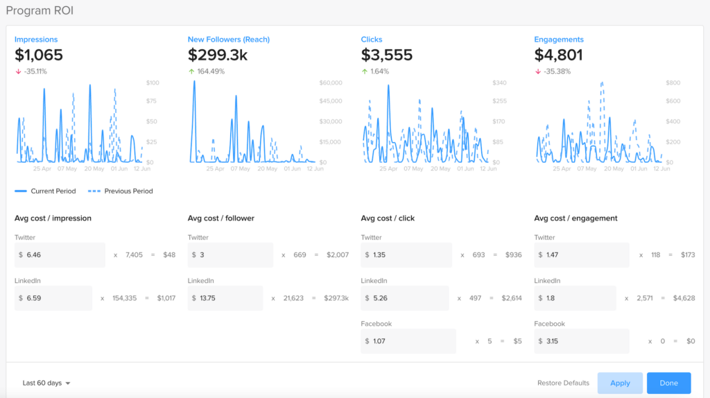 Un programma come EveryoneSocial costa una frazione degli annunci a pagamento. Ad esempio, i risultati degli influencer dei dipendenti che abbiamo trovato sono di circa $ 0,05!
