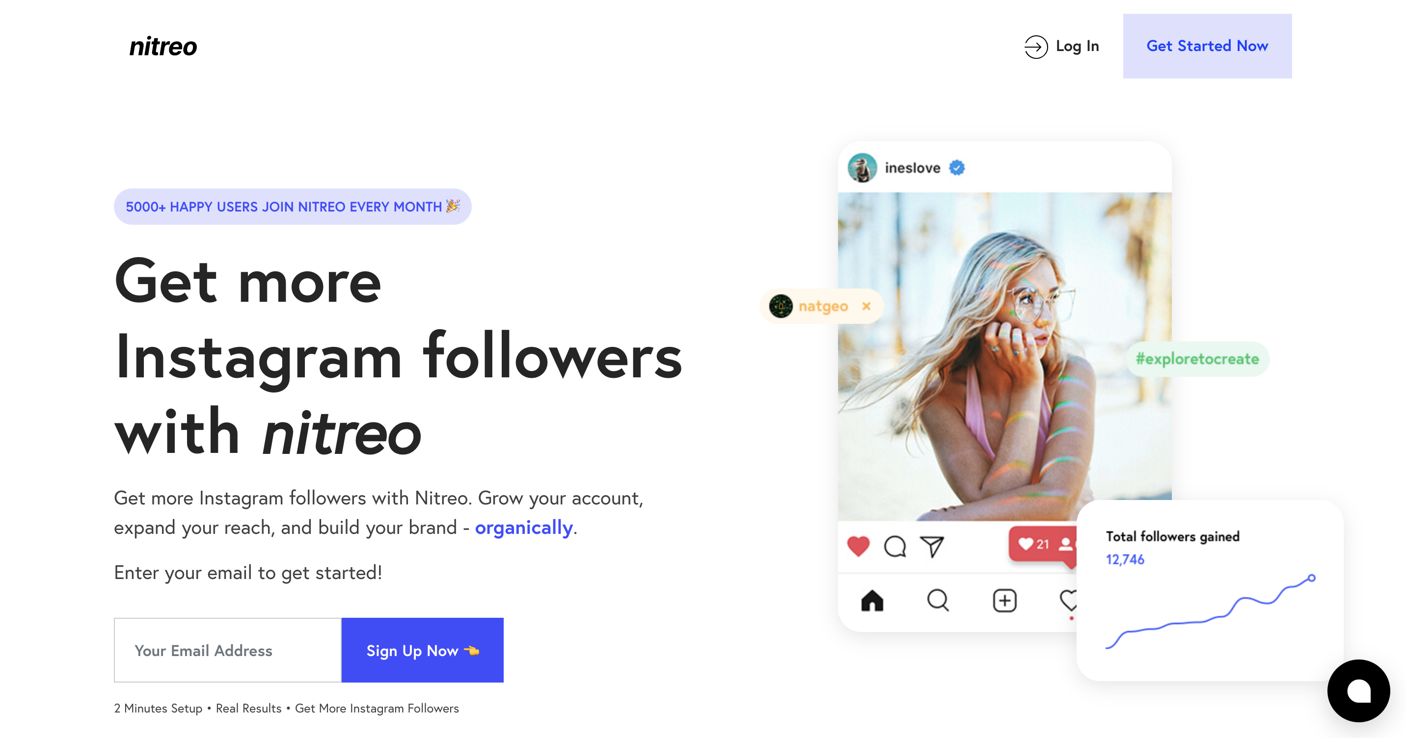 Nitreo è un altro strumento di automazione di Instagram focalizzato sull'aiutare i marchi a ottenere più follower su Instagram. Lo strumento di Nitreo interagisce anche con account reali, aiutandoti a mantenere il coinvolgimento su Instagram e a rimanere un'autentica presenza online senza finire con migliaia di follower bot (o acquistati).