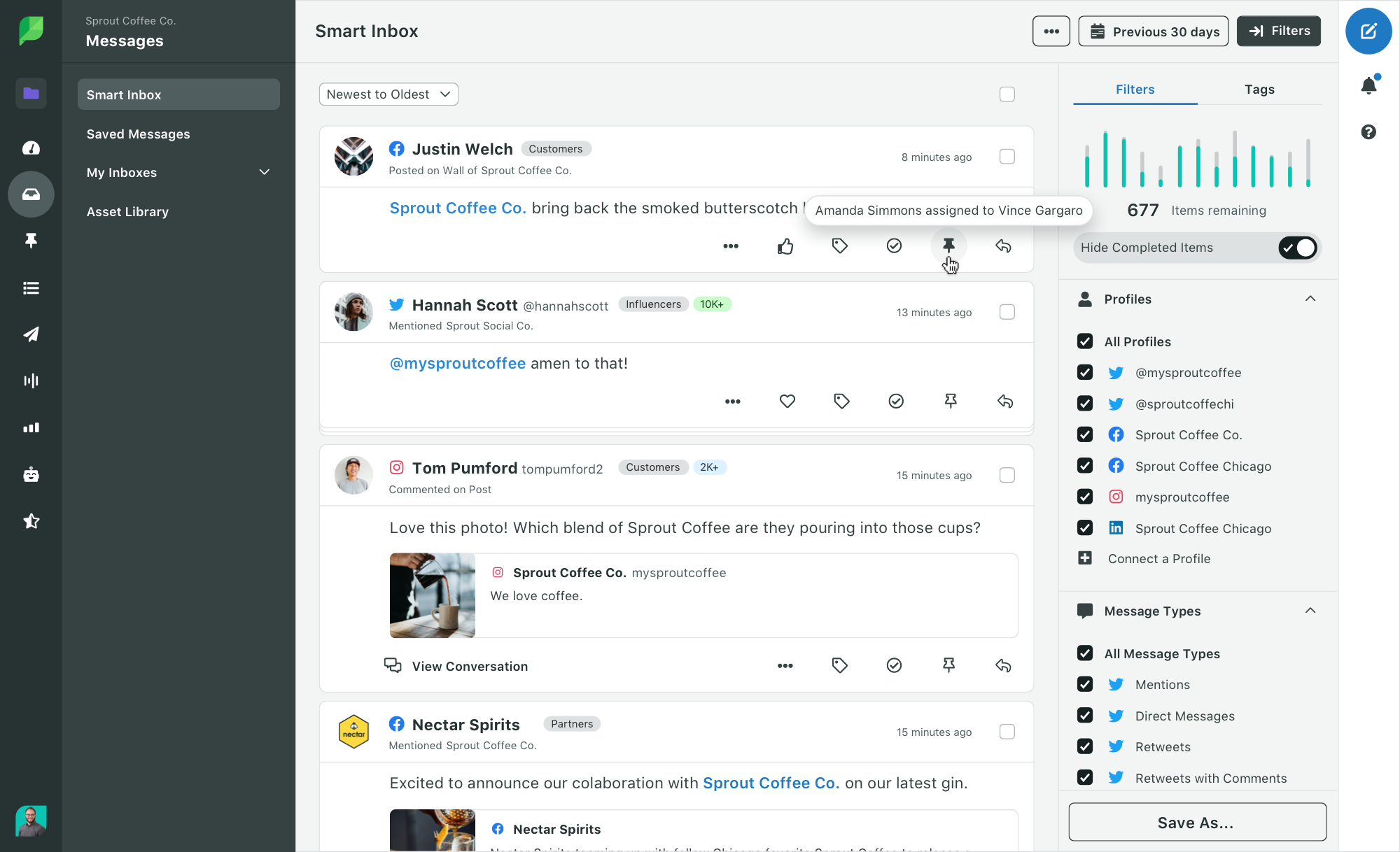 Puoi anche utilizzare gli strumenti di collaborazione del team di Sprout Social per assicurarti che tutto funzioni senza intoppi e che non vengano perse voci.