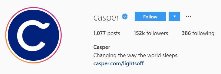 Ad esempio, Casper include solo la prima lettera del carattere stilizzato del marchio per un'immagine del profilo in grassetto.